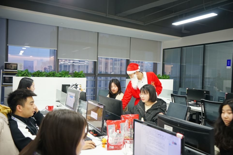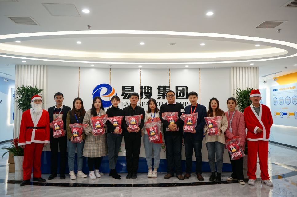 不,是他们! 很多人说,小孩的愿望靠圣诞老人,成年人的愿望靠自己。今天让我们都回归本真,做一个有愿望的,无忧无虑的小朋友,让圣诞老人带走属于大家的愿望,期待在未来的某一天,心愿卡上的每一个愿望都能实现。 平安夜,吃个苹果保平安。公司为易搜的家人们准备了精致的苹果小礼盒,圣诞老人把寓意平安的甜美之果送给每一个奋斗在工作岗位上的小伙伴,希望大家在未来的日子,都能平安喜乐! 浓情圣诞,记录心愿,传递平安。每一张心愿贴上都写满了愿望:“暴富”“变美”“健康”“脱单”......心之所向,念念不忘,必有回响。 最后,圣诞老人从几百张心愿卡中抽取十名幸运小伙伴的愿望,额外送他们惊喜小礼物。今天,他们是圣诞树上最闪耀的星星。 愿望放在心中,圣诞和新年烟火,美好都会如期而至。